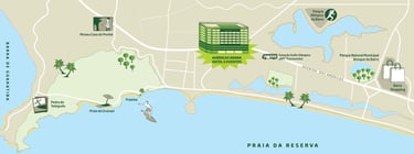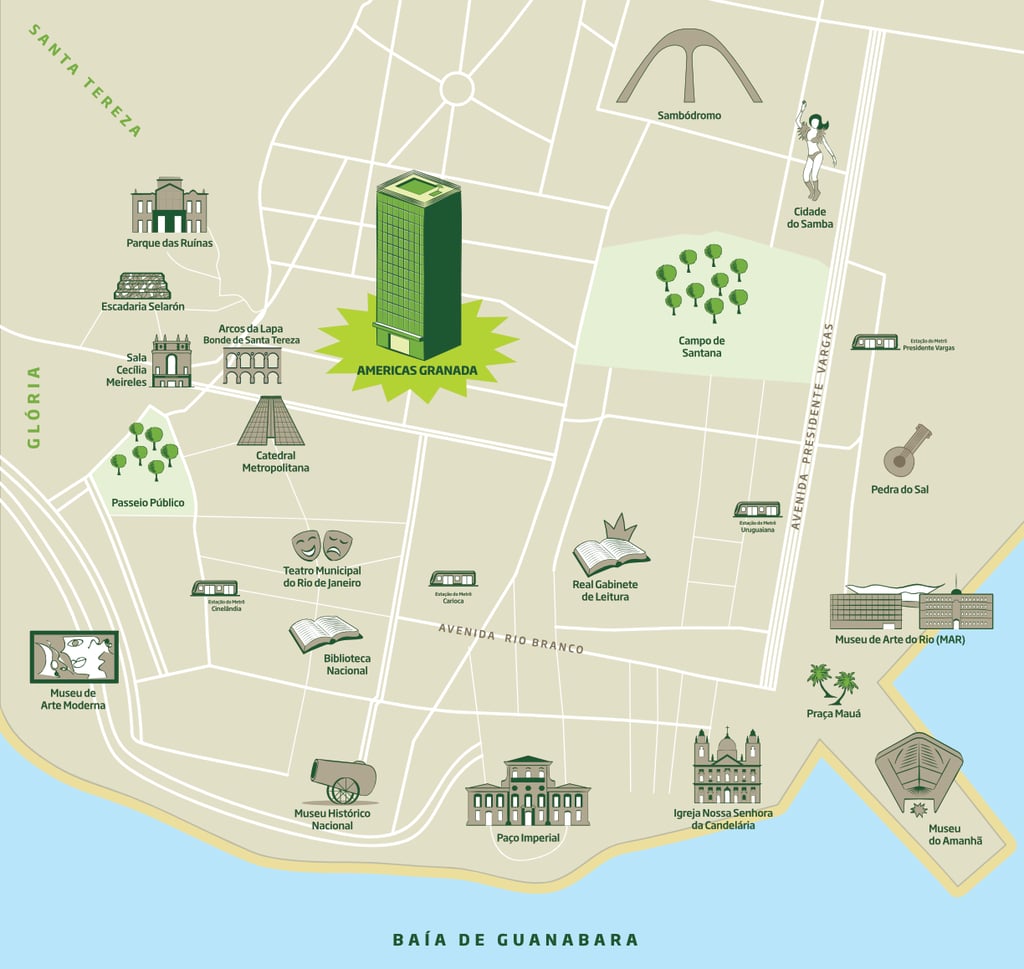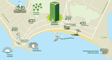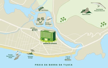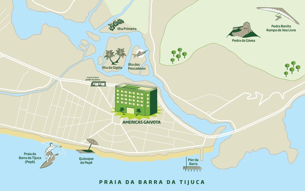 Buurt Agency invited me to create this series of four illustrated maps with the attractions surrounding the Americas chain hotels in Rio de Janeiro. Made in 2016.