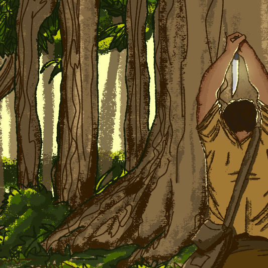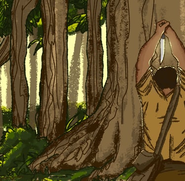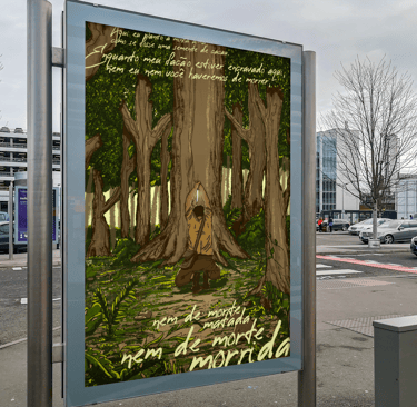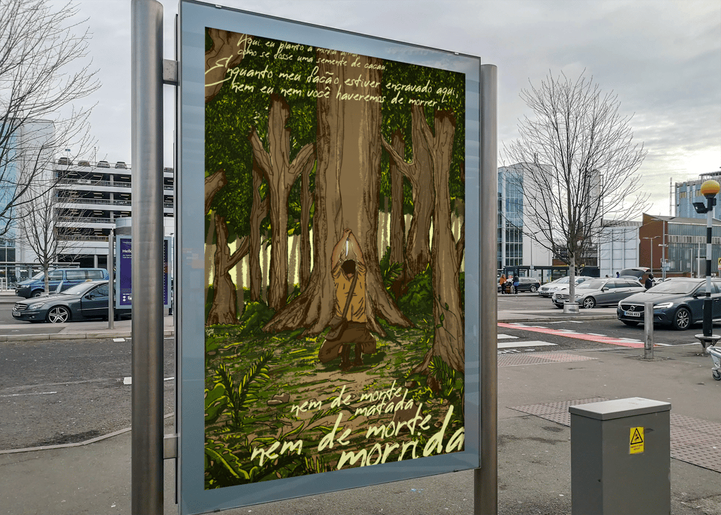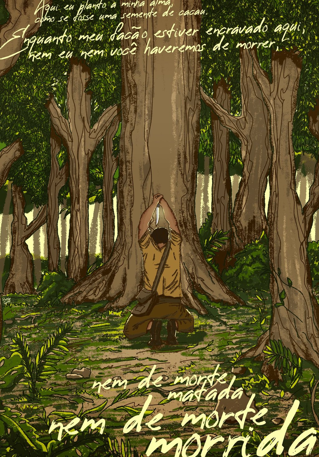 Concept poster for the tv Globo soap opera "Renascer". Originaly aired in 1993 (and which recently received a remake) the history begins with the main character José Inocêncio making his pact with the Jequitibá tree, in a scene that would become one of the most iconic on Brazilian Tv. The text says that neither he nor the tree will die while the machete is stuck at the roots of the Jequitibá.
