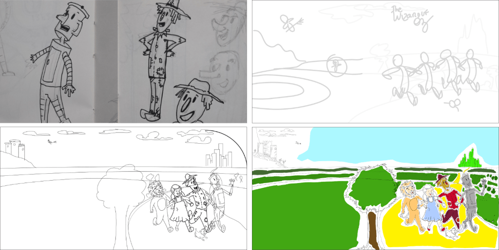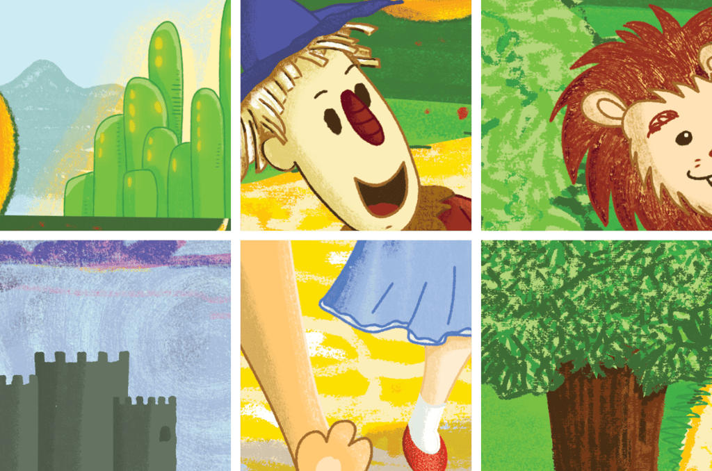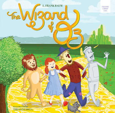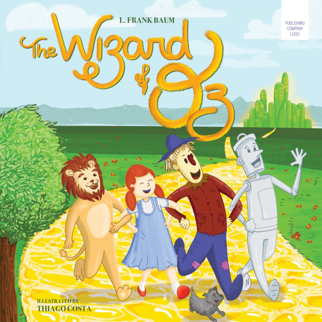 I wanted to create a children's book concept in which I could explore visual diversity. I chose The Wizard of Oz for its magical characters and colorful settings in which I could explore a vibrant palette and a whimsical, child-friendly style. I already had some draws on my sketchbook that were the starting point to draw directly on digital. The title lettering was also drawn by me in a style that combines and enhances the composition.